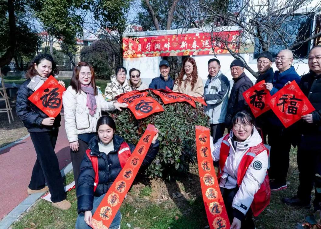 秦虹街道侨联组织归侨侨眷以笔寄情、以纸传福。书法老师们与侨界书法爱好者欣然提笔、挥毫泼墨,书写出一幅幅寓意吉祥的春联和福字。月牙湖街道侨联携手月牙湖书画院,特邀7位书法老师走进社区,为辖区侨胞和居民现场书写春联、绘制“福”字,送上浓浓的新春祝福。
