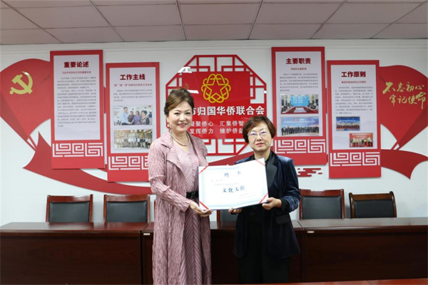 虞清原籍南京,她介绍了美国飞虎队传播协会在开展文化交流、推进中美民间友谊方面所做的工作,希望能与市侨联开展深入合作,为助推南京经济社会建设、提升南京国际影响力贡献力量。在热烈的气氛中,杨雯懿向虞清颁发了“南京市侨联文化大使”聘书。