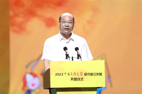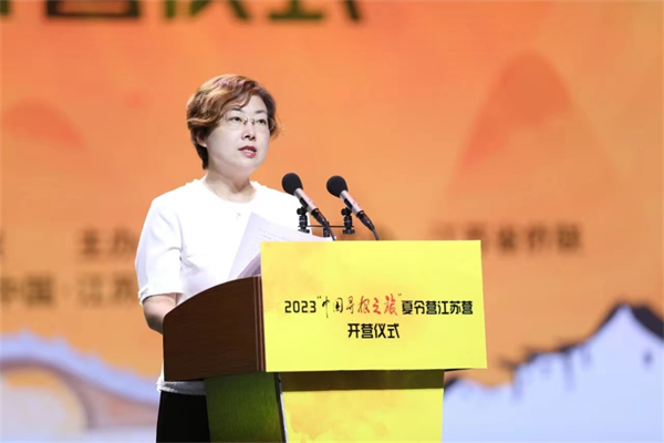 2023“中国寻根之旅”夏令营江苏营开营仪式在南京市艺术小学举行,来自11个国家和地区的营员和领队,南京市有关学校师生代表,海内外新闻媒体记者等近500人出席仪式。仪式由省侨联副主席艾卉主持,同步向全球华侨华人直播。省委常委惠建林,省侨办、省政府新闻办、省教育厅、省文旅厅、省体育局等省和南京市相关部门负责同志出席开营仪式。省侨联主席刘标在开营仪式上致欢迎词,南京市侨联党组书记杨雯懿代表10家办营单位作了发言。南京营的加拿大魁北克孔子学院营员们进行才艺展示。