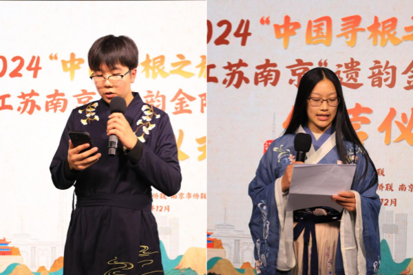 美国翰林华文教育基金会的官以勒和南非开普敦华星华教中心的曾嘉琳作为营员代表发言,他们分享了参加此次冬令营的收获和感悟,表达了对中国传统文化和南京的热爱。