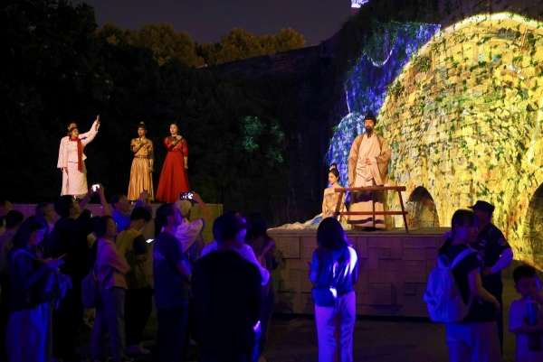 活动现场,大型沉浸式光雕艺术演出《心印·中华门》让嘉宾们流连忘返。演出以中华门的历史为轴线,通过真人实景演绎、3D投影秀、光影互动等方式,展现着中华门的建筑价值、精神价值与文化价值。整场演出包含《中华门之源》《中华门之尊》《中华门之光》三个篇章,以中华门瓮城的三重门展现三个场景,讲述12个故事,嘉宾们移步换景,便又进入新的故事。