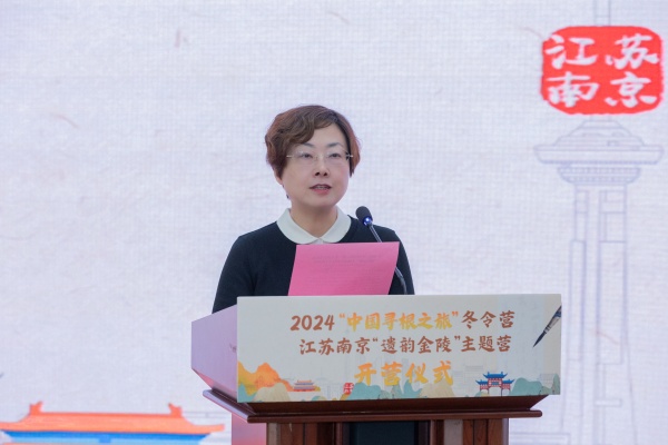 杨雯懿向远道而来的领队老师和海外华裔青少年朋友们表示热烈欢迎,向省侨联的关心指导、地铁实训基地的大力支持以及筹备冬令营工作的海内外机构表示衷心感谢。她说,六朝风流、千古名城,悠久历史赋予了南京丰富的城市肌理;钟山龙蟠、石城虎踞,秀美山水赋予了南京独特的城市颜值;文脉悠长、融汇古今,开放视野赋予了南京包容的城市性格。希望营员们通过10天的冬令营体验,做中华优秀文化的传播者,不断加深对中华文化的认识和理解,领略中华文明的无穷魅力;做魅力南京的讲述者,将大家在这里的所见所闻带回去,讲好中国故事、南京故事;做中外交流的促进者,发挥侨胞与祖(籍)国和住在国感情相通、文化相融的优势,推动南京与海外的交流互动。