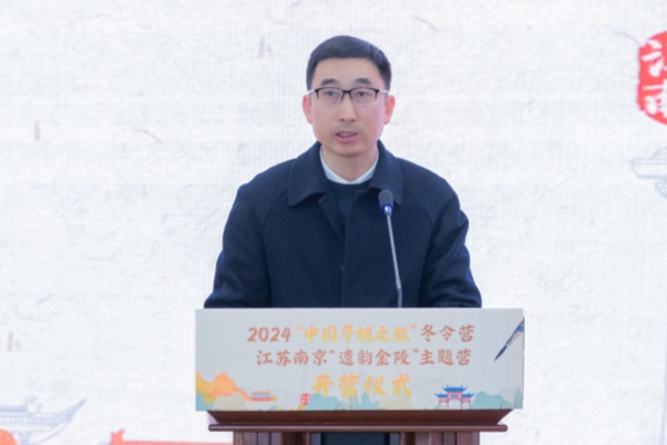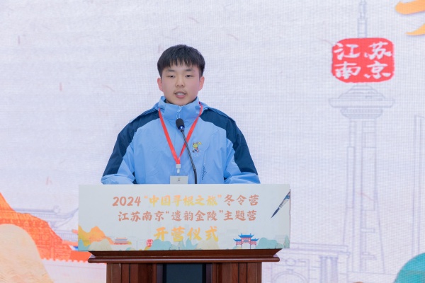 营员代表、来自南非开普敦华星华教中心的朱宇峰表达了对探寻南京这座历史古城的期待,他表示将和营员们一起在南京结交新朋友,分享故事、共同成长,并向家人和朋友将讲述和传递在南京的所见所闻所感,做南京和世界交流互动的“友好小使者”。