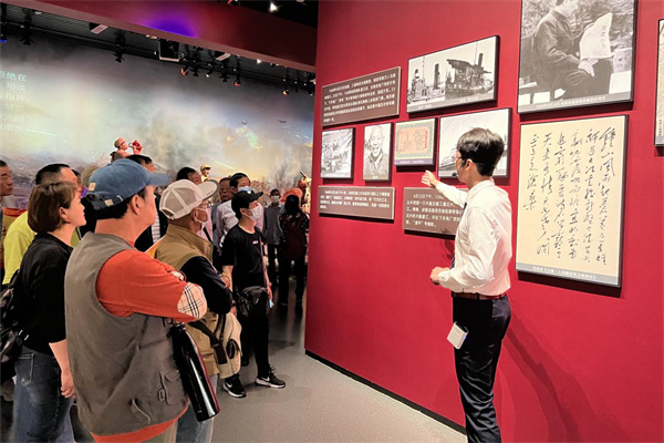 江北新区红色广场由火车广场,初心广场雕塑群,红色文化展陈馆三部分组成。场馆内主展厅包括“两浦星火革命洪流”“疾风劲草北岸屹立”“救亡烽火坚持抗战”等7个篇章,大家通过听取讲解、观摩实物、观看图片视频和阅读红色书籍等方式,追忆江北地区红色历史,重温波澜壮阔的斗争岁月,深刻领悟老一辈革命先烈们信仰坚定、不惧牺牲,前赴后继、坚守使命的不屈精神,接受了全面深刻的政治教育、思想淬炼和精神洗礼。