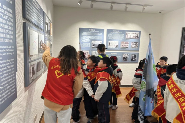活动当天,孩子们在侨联志愿者的带领下参观了华兴村侨史陈列馆。正是这栋二层小洋楼,见证了华兴村一百年来的风雨与辉煌。陈列馆里按照年代顺序分为华兴由来、华兴盛世、华兴抗战、华兴新生四个篇章,把爱国华侨返乡救国的事迹娓娓道来。