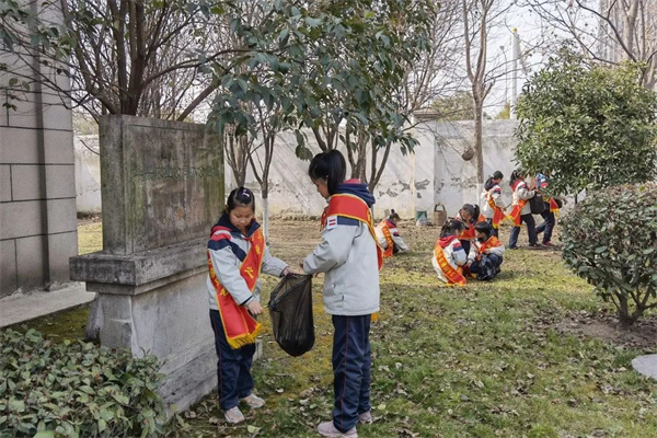 孩子们拿着扫把、毛巾等清洁工具把侨史馆内的灰尘、院子里的落叶、周边绿地上的垃圾、枯树枝等全部清理干净。侨联志愿者借此机会告诉孩子们学雷锋精神的重要性,告诉他们要热爱志愿活动、热心公益,要掌握环境保护的知识,向身边人传播保护环境、美化环境、促进生态环境建设的理念。
