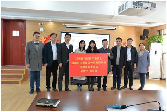 为弘扬公益慈善精神,践行新时代侨青责任,携手关爱特殊儿童成长,近日,江苏省侨青会举办“燃青春”侨界青年社会公益活动,向南京市栖霞区特殊教育学校捐赠价值3.12万元的爱心营养餐。省侨青会副会长费家亮、梁毅恒,副秘书长夏逸清赴学校现场捐赠,省侨联、栖霞区相关部门领导等参加捐赠仪式。