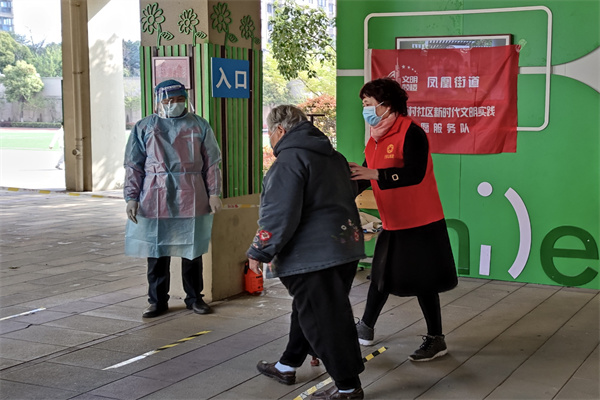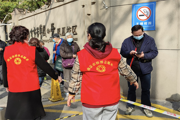 (鼓楼区宁侨志愿者帮助市民参加核酸检测)