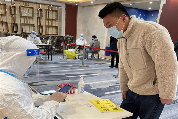 (鼓楼区宁侨志愿者为居民录入核酸检测信息)